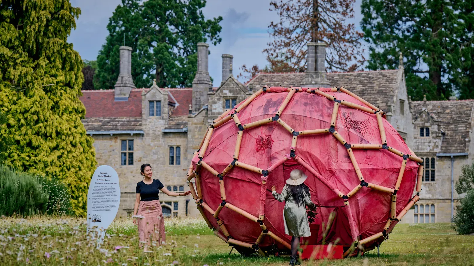 “This piece is a playful trick to human perception, taking us down to a microscopic level. The immense garden at Wakehurst inspired me to expand a seed to 500 times bigger than its original size. Come inside and hear the voices of the elder guardians bringing together the frequency of the coral tree (Erythrina americana) seed, the spirit of the ancient seed and the mythology of American and Mexican ancestral cultures. The installation is made of natural Mexican materials and sounds: bamboo, Erythrina americana seeds, willow and cotton fabric with natural beeswax, the frequency of the plant and the voices of the elders.”